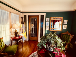 The Antechamber has a venerable history in architecture; it provides a space for visitors to wait while the residents of Alexander House prepare themselves to receive their guests. As you enter from the obscure street frontage door, during the day, the room is streaming with sunlight from the large windows on the east and south sides of the room. In the center of the room is a round 1920s drum table with brass lion’s feet legs, where you sign the guest book.