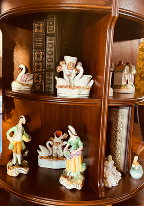 Like any other grand cottage, Alexander House has a Withdrawing area formulated and built as the room guests withdraw to after a dinner fete, intended for the women of the house to have conversations, play cards, or entertain one another with music. At the same time, the men remain in the dining room or retire to the Library or smoking room to discuss business affairs, drink, and smoke. The Withdrawing Room serves as the social center of the house but only for adults. At Alexander House, the Rostislavovichs hold fast to the traditions and history of this room with its heavy curtains with elaborate fringe trims, 19th-century Staffordshire china figurines from Great Britain, and delicate china figurines from Russia. The Ivory and soapstone collection belongs to Mikhail's family from the 18th and 19th centuries. While the bronze sculptures of the Mountain Sheep and Wolfe are 20th-century pieces. One of the most interesting pieces is that of Michale Angelos Moses. Another curious collection came from Japan and China from his family's trip at the end of the 18th century. Crystal libation serving pieces and silver tea service are mixed throughout the room with original oil paintings by European and local artists. These rooms are meant to impress your guests and tell your family story.